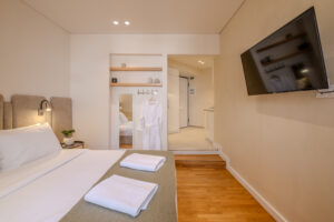 The studio is on the 5th floor of a Galleria and it is accessible via elevator and staircase. The building has a consierge during the day and on nighttime the entrances are shut and it is accessible via a manhole. The Ancient Walls are visitable. The building features a cafe. As far as the studio is concerned, the bed is queen sized, the windows are double glazed, the door is a safety door and bedding and linens are provided.