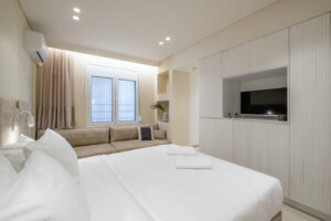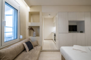 This cozy and elegant studio is privileged to be situated at Galleria Anatoli, built on the ancient walls of Athens. The building itself is part of the city’s rich heritage, setting the pace for a unique and authentic experience. Minimal, comfortable and fully equipped, this studio is ideal for travellers who want to explore historic landmarks, enjoy local cuisine, shop, or experience Athens' nightlife, as everything is in walking distance.