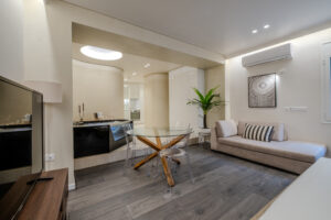 The studio is on the 5th floor of a Galleria and it is accessible via elevator and staircase. The building has a consierge during the day and on nighttime the entrances are shut and it is accessible via a manhole. The Ancient Walls are visitable. The building features a cafe. As far as the studio is concerned, the bed is queen sized, the windows are double glazed, the door is a safety door and bedding and linens are provided.