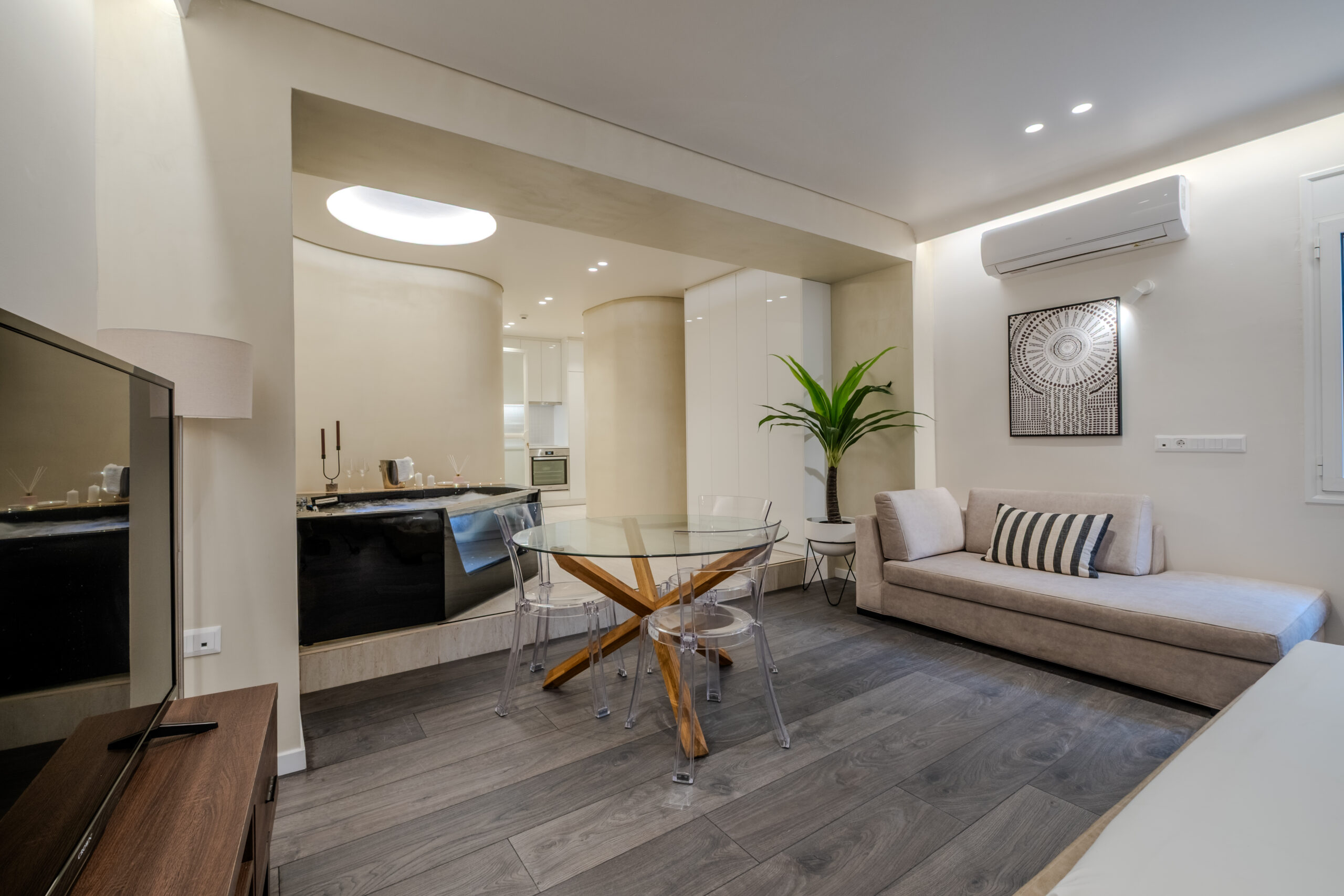 This sophisticated, spacious studio stands out both by its prime location and its amenities. Located inside Galleria Anatoli, a bulding with rich history, built on a part of the Ancient Walls, is in walking distance from all the main attractions, the best restaurants and bars and Ermou str. Its features include a fully equipped kitchen, a dining table to enjoy comfortably any meal and a jacuzzi. Ideal for travellers who want to indulge themelves with a relaxing vacation.