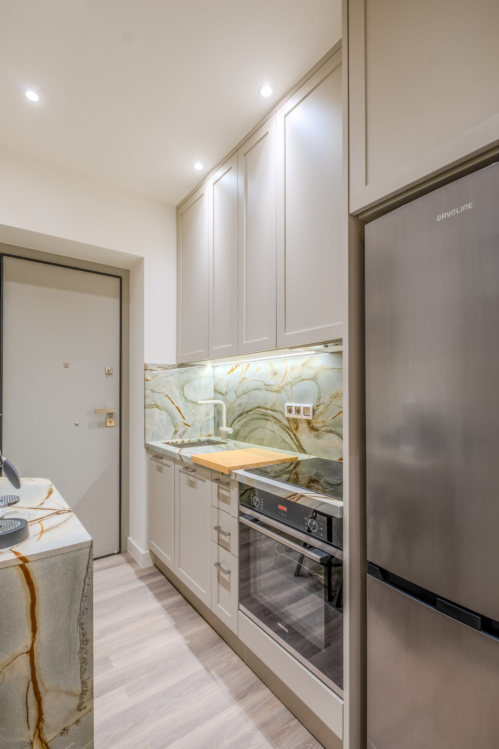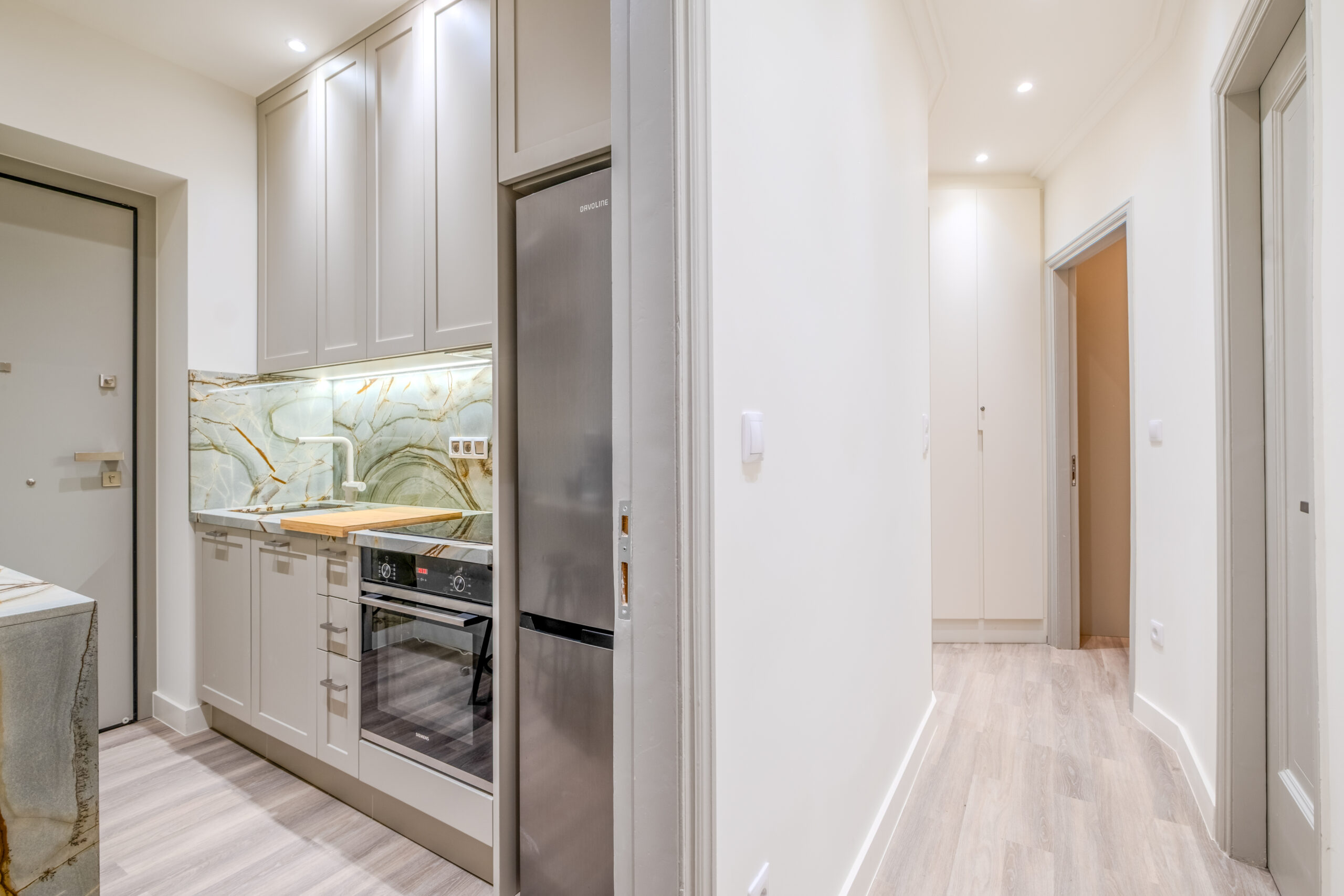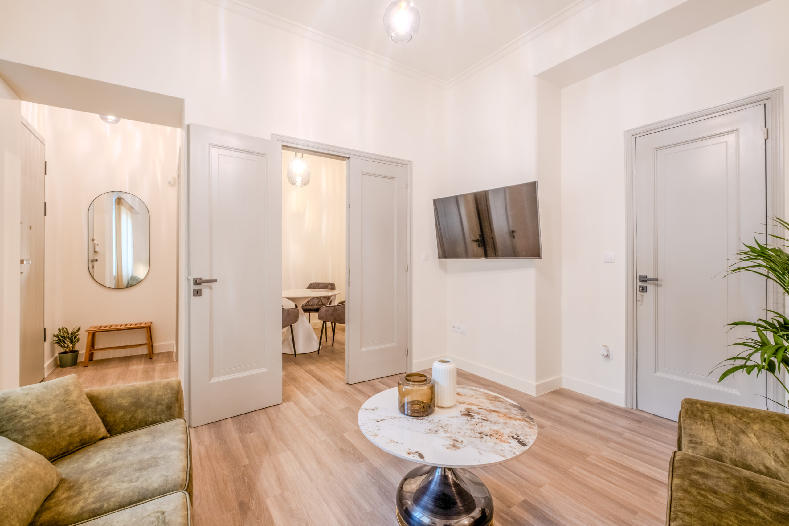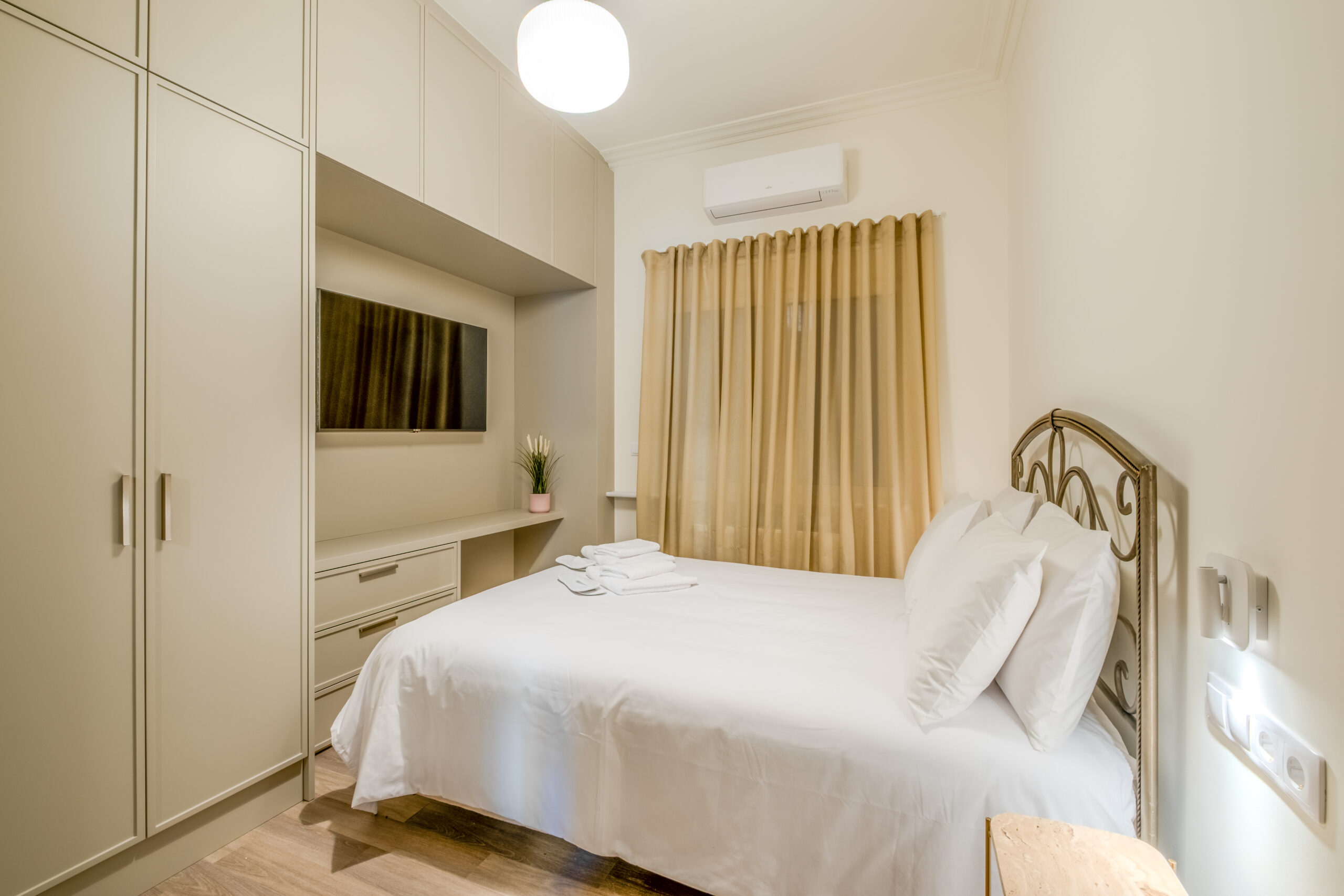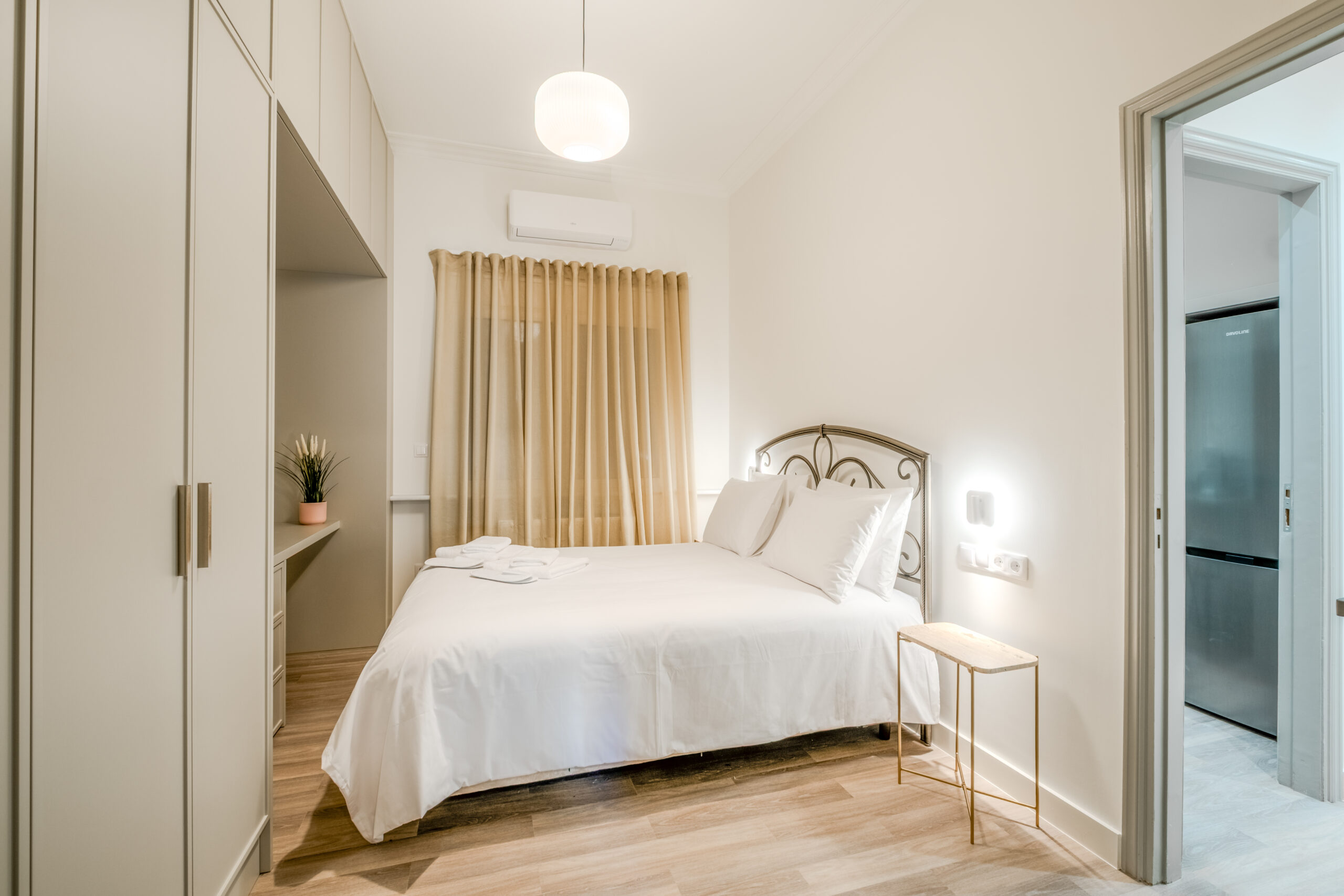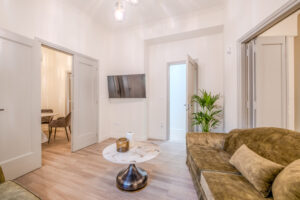 Its entrance is in a quiet and sunny patio and it consists of two comfortable bedrooms, both featuring double beds, ample of storage space, one living room with a smart TV, an entrance hall with a full body sized mirror, a fully equipped kitchen and a bathroom with a shower.